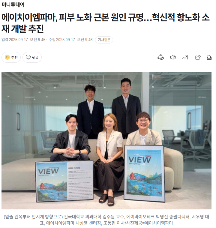 에이치이엠파마, 피부 노화 근본 원인 규명…혁신적 항노화 소재 개발 추진 2025-09-17 News https://n.news.naver.com/article/008/0005251587?sid=101 Older Post 김주원 교수 연구팀, 노화 조직 회복 위한 새로운 치료전략 제시 Newer Post 서우영 대표이사 경기도 중소기업 유공 표창 수상