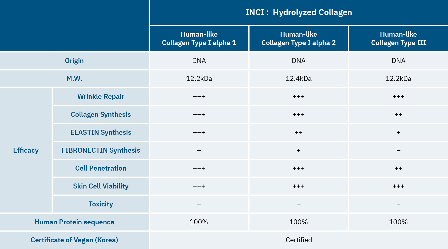 - Efficacy of Collagen synthesis, skin cell repair, collagen-related gene expression